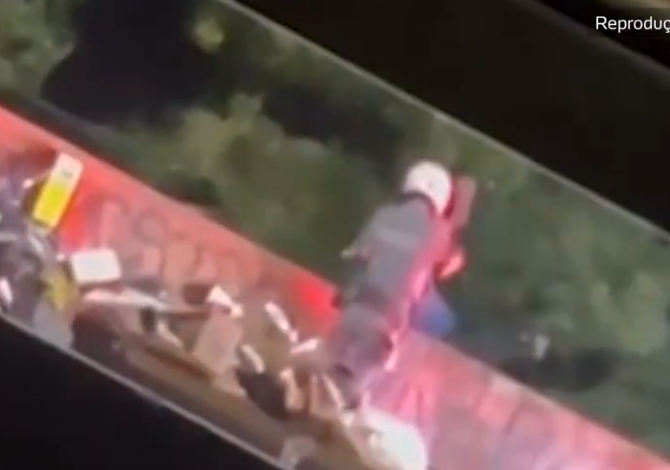 Um policial militar foi flagrado por uma câmera de segurança arremessando um homem do alto de uma ponte em São Paulo, na madrugada desta segunda-feira, 2. O caso aconteceu na Zona Sul da cidade quando uma guarnição militar parou um suspeito que conduzia uma motocicleta. No vídeo é possível ver que o PM segura o indivíduo pela camiseta, se aproxima da beirada da ponte e o joga no rio. Não há informações sobre o estado de saúde da vítima.