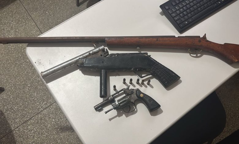 Diante da denúncia, os policiais se dirigiram ao local indicado, onde encontraram uma porta de vidro aberta. Após uma varredura minuciosa no interior do ferro velho, foram localizadas três armas de fogo e uma Carteira Nacional de Habilitação (CNH) . Todo o material foi apreendido e apresentado na Delegacia de Polícia Civil de Governador Mangabeira.
