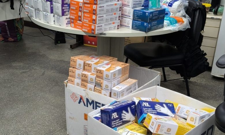 Um suspeito, de 44 anos, foi flagrado comercializando itens de uso exclusivo de estabelecimentos de saúde na localidade. Os materiais estavam com identificação de destinatários ligados a unidades públicas. Em interrogatório, o homem informou possuir um depósito nas proximidades, onde foram encontradas outras mercadorias.