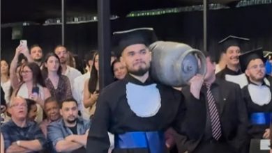 Jovem emociona a todos ao entrar em formatura com botijão de gás